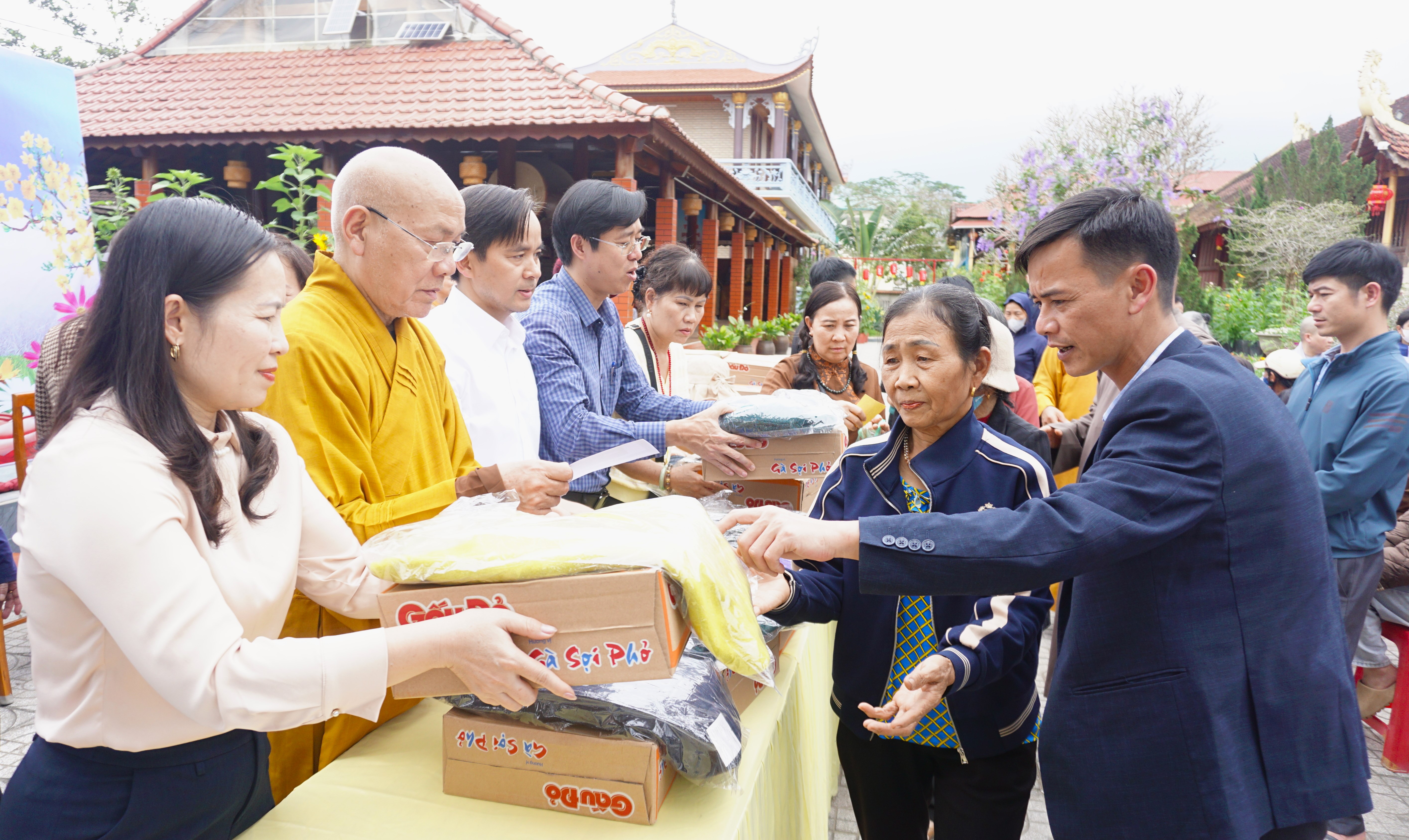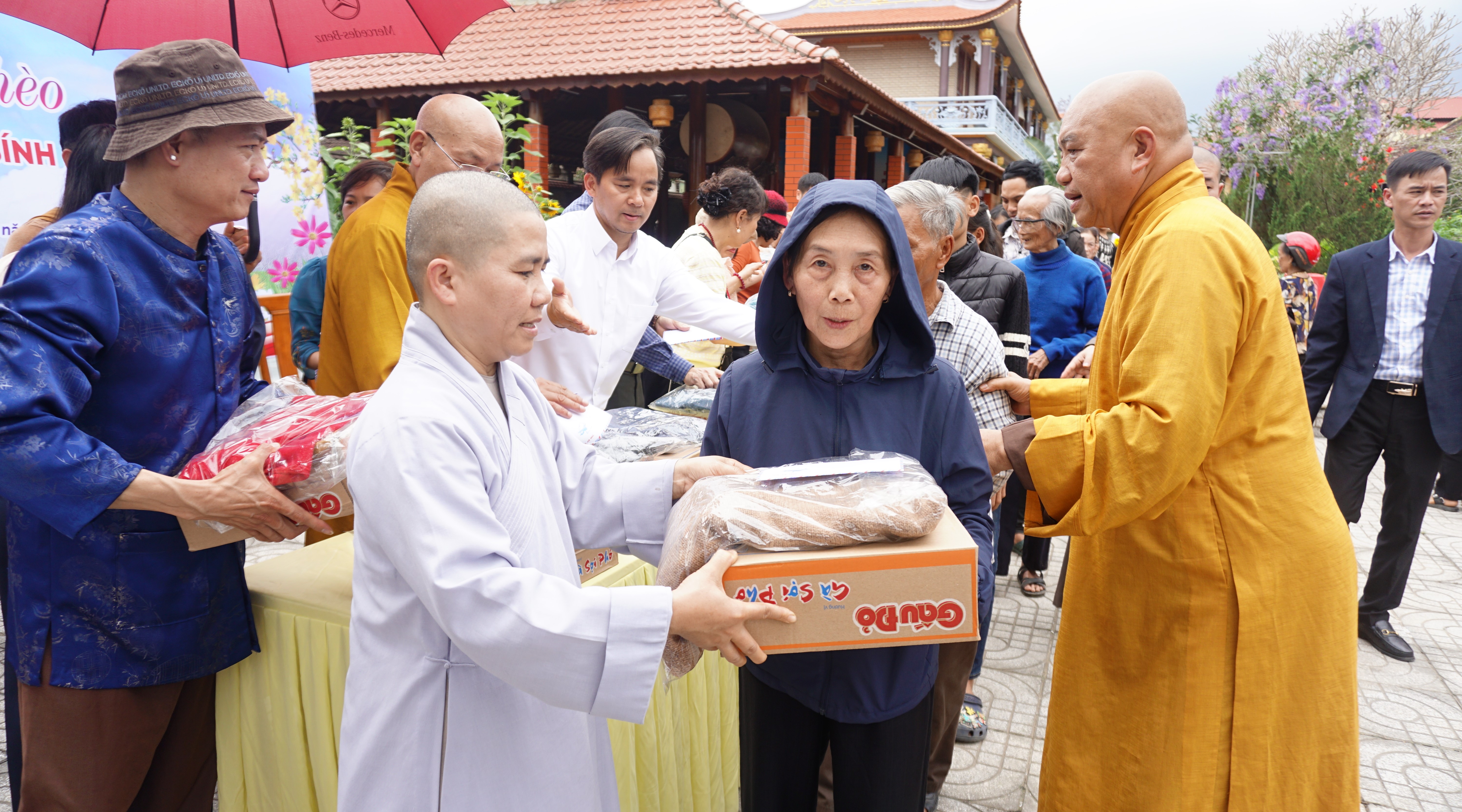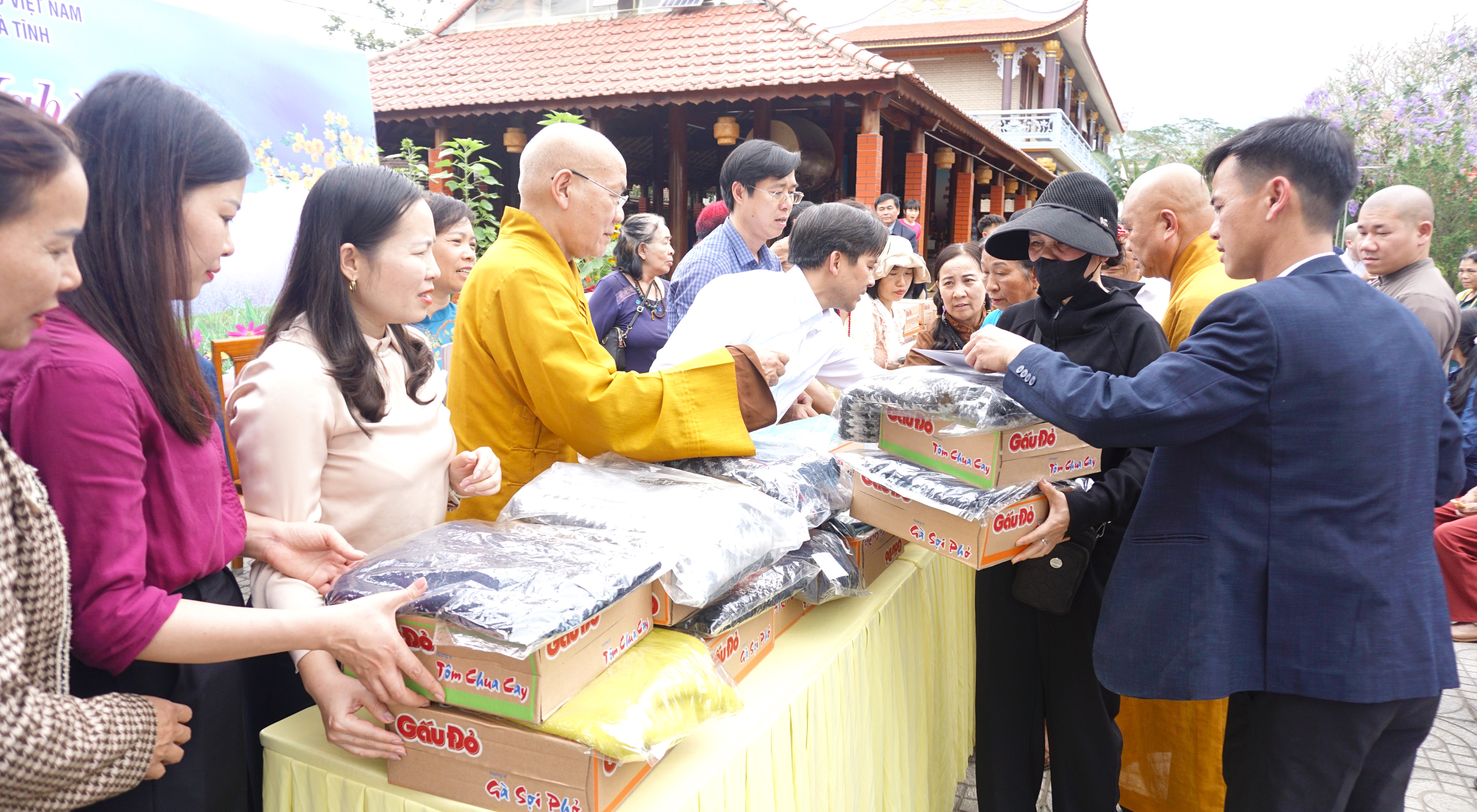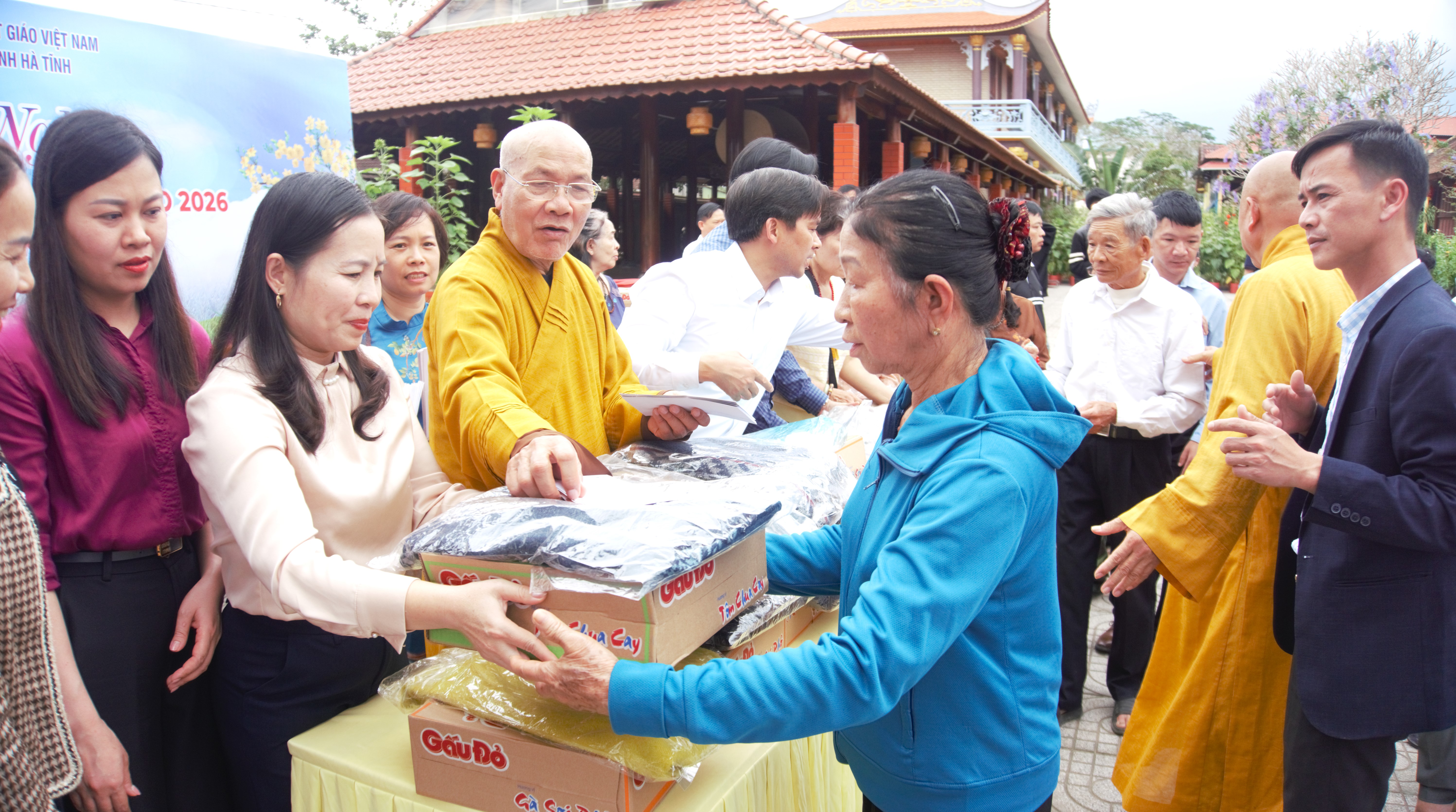 Tại chùa Hạ Phúc - xã Hương Đô, đại diện Ban Từ thiện xã hội Trung ương Giáo hội Phật giáo Việt Nam cùng lãnh đạo địa phương đã trực tiếp trao quà, thăm hỏi, động viên bà con. Mỗi phần quà gồm 500 ngàn đồng tiền mặt, gạo, mì tôm, áo len góp phần hỗ trợ các gia đình ổn định đời sống, chuẩn bị đón Tết đầm ấm hơn.