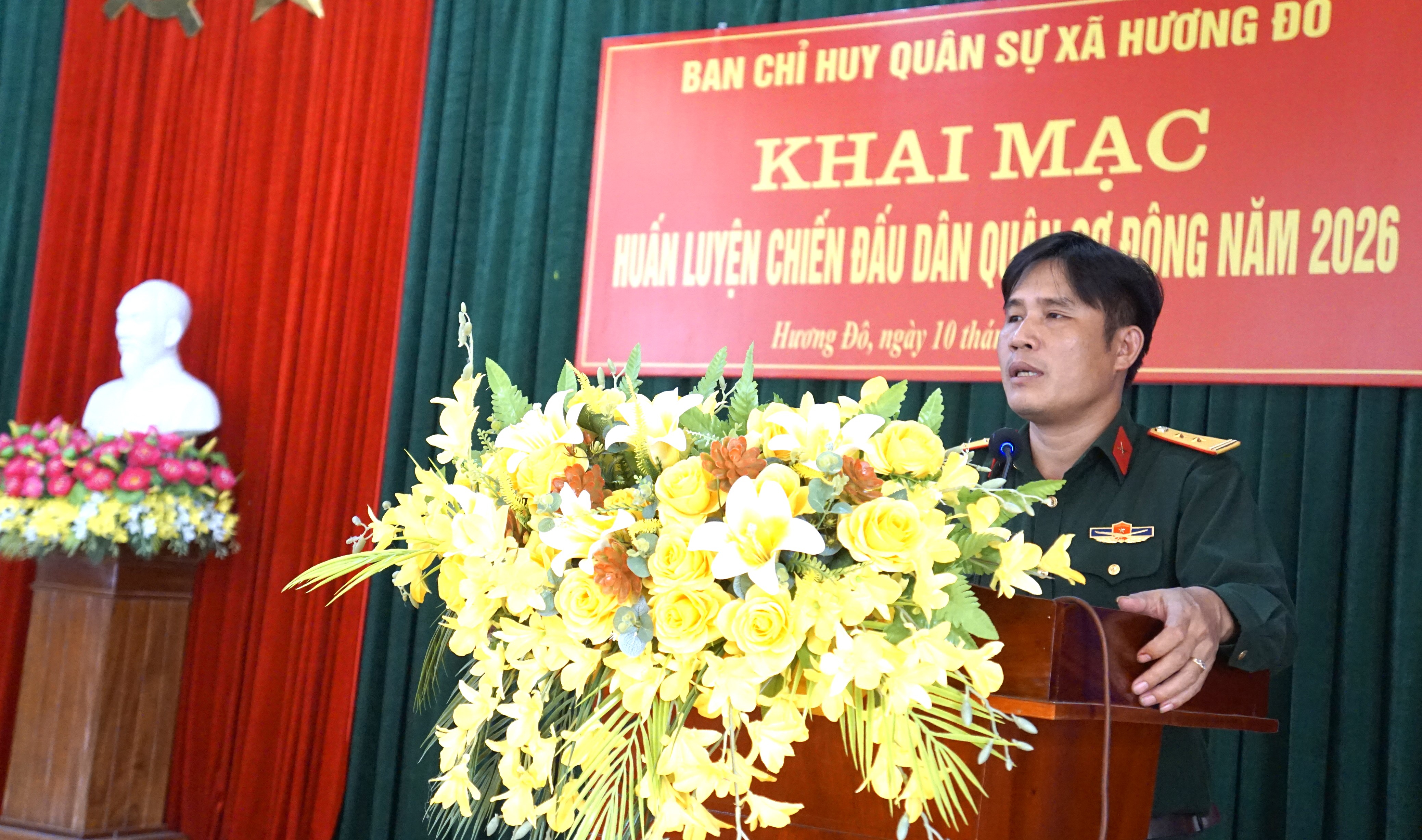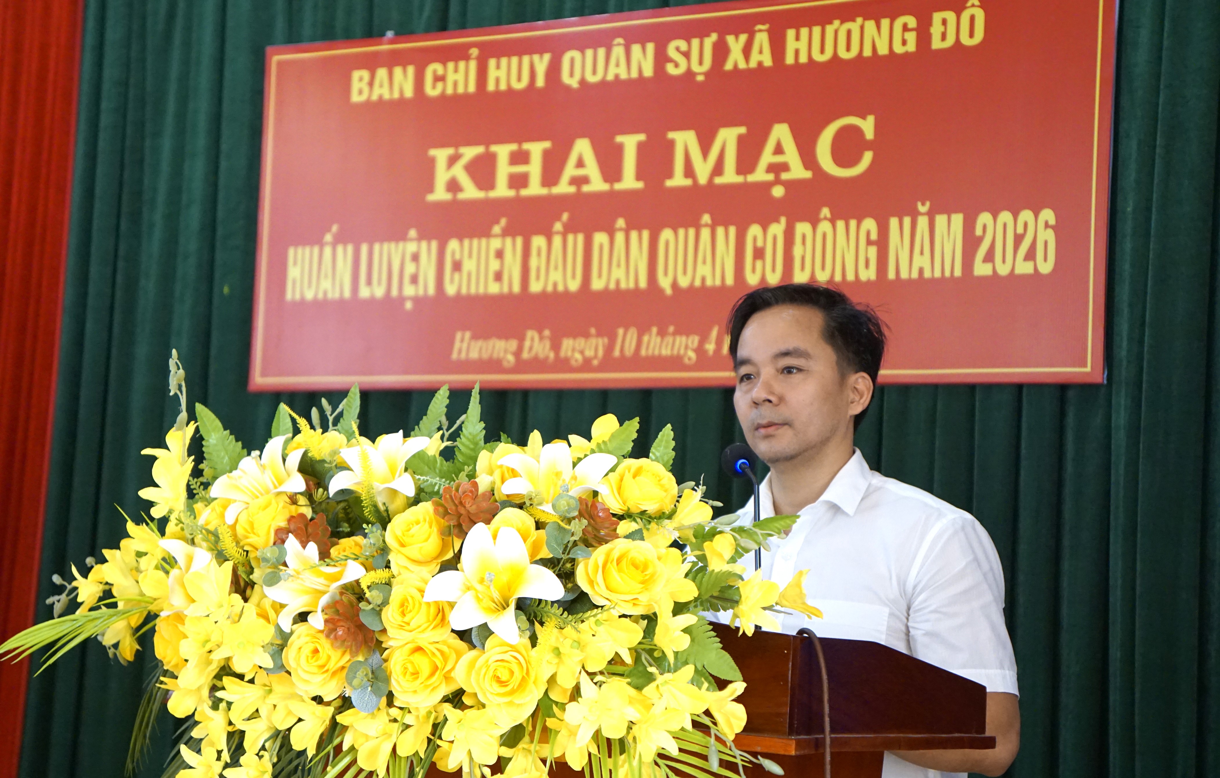 Phát biểu chỉ đạo tại buổi khai mạc, đồng chí Trung tá Nguyễn Trần Hiền - Ủy viên Ban Thường vụ Đảng ủy, Chỉ huy trưởng Ban Chỉ huy Quân sự xã nhấn mạnh vai trò, ý nghĩa quan trọng của công tác huấn luyện đối với lực lượng dân quân cơ động trong tình hình hiện nay. Đồng chí yêu cầu các chiến sĩ dân quân tham gia huấn luyện cần nêu cao tinh thần trách nhiệm, chấp hành nghiêm kỷ luật, tích cực học tập, rèn luyện, phấn đấu hoàn thành tốt nội dung, chương trình huấn luyện đã đề ra. Thời gian huấn luyện diễn ra từ ngày 10/4 đến ngày 23/4/2026.