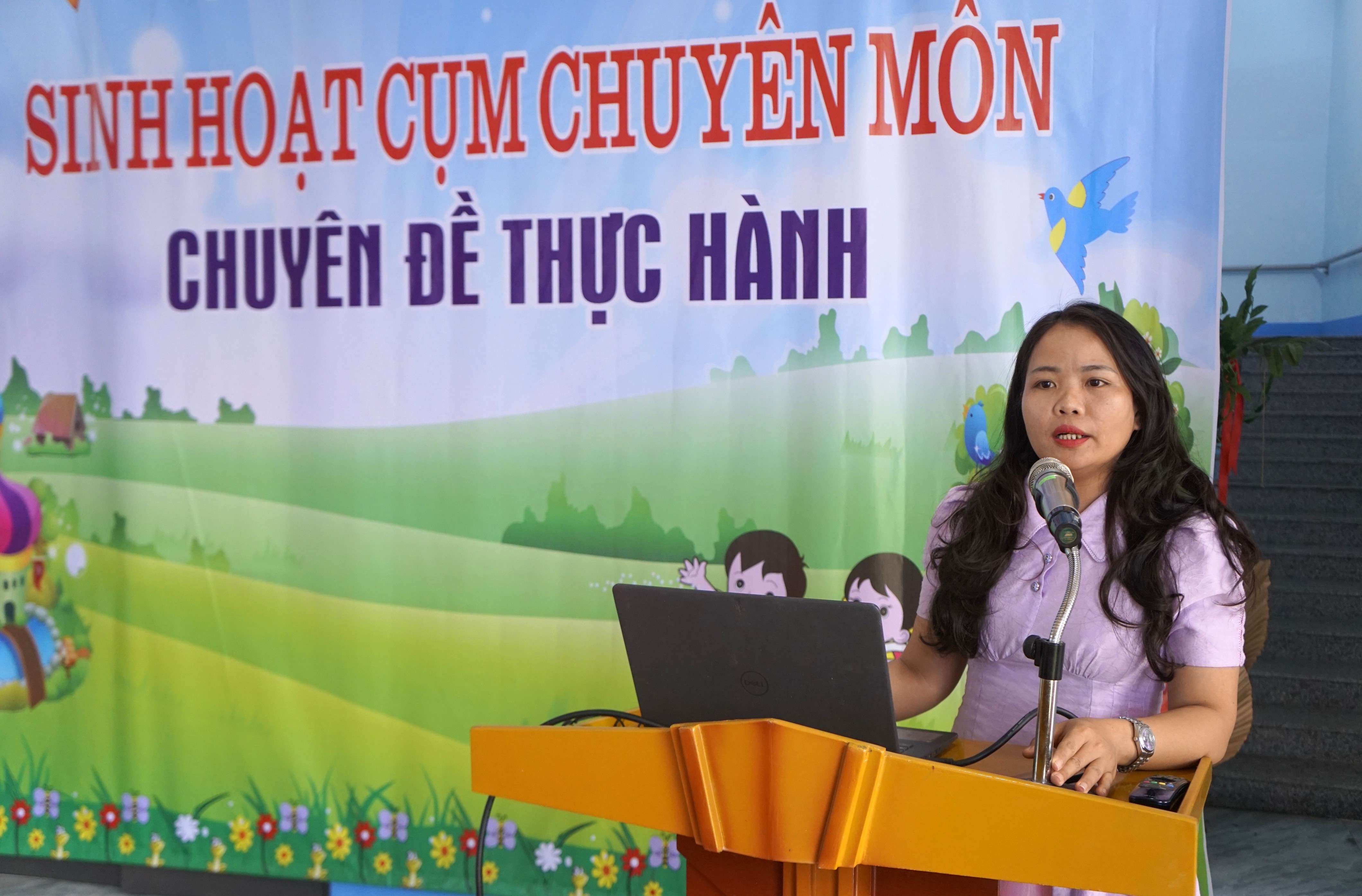 Cô giáo Nguyễn Thị Kim Oanh - Hiệu trưởng Trường Mầm non Hương Bình triển khai chuyên đề.