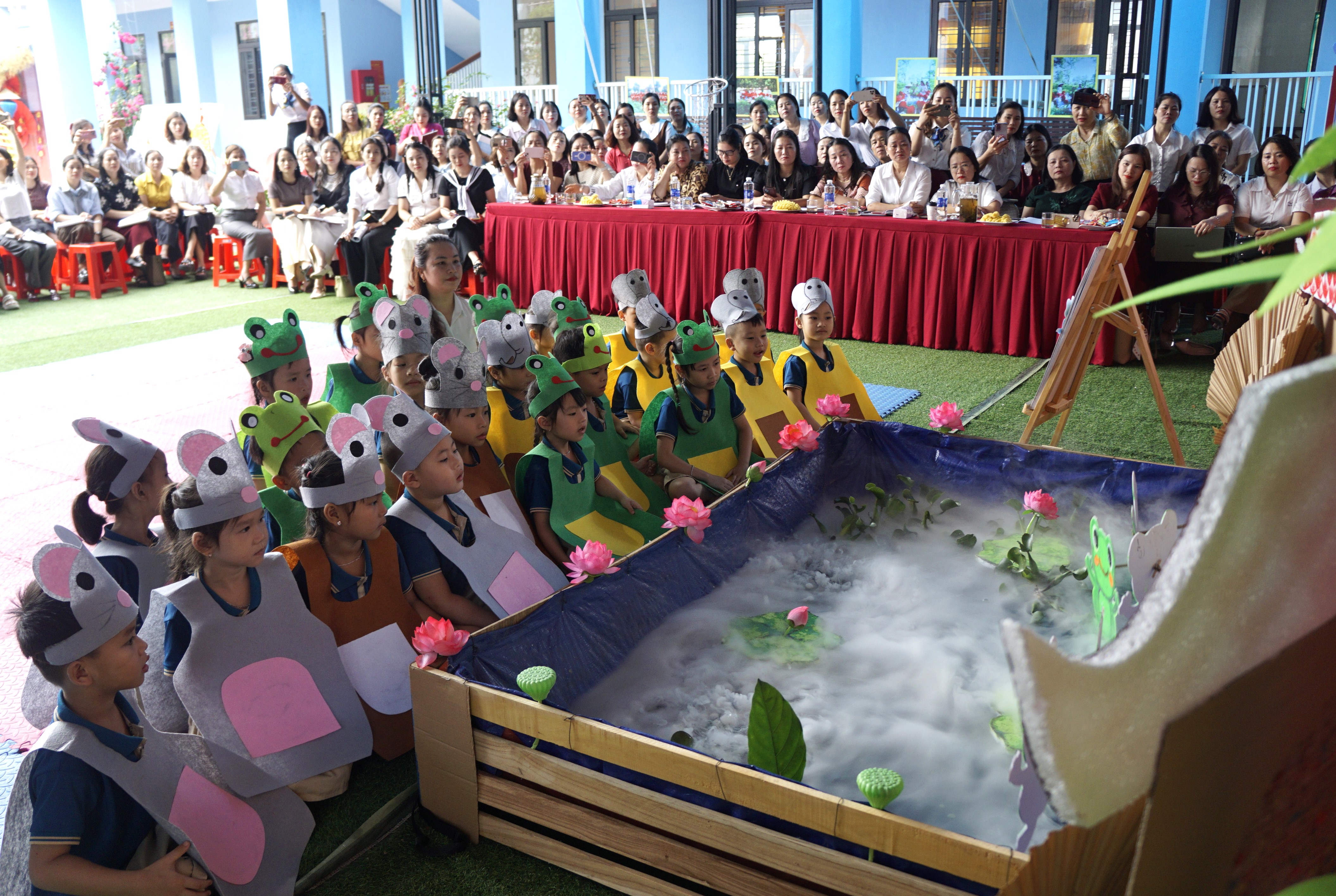 Phát biểu chỉ đạo tại buổi sinh hoạt chuyên môn, đại diện Sở Giáo dục và Đào tạo ghi nhận, biểu dương tinh thần trách nhiệm, sự chuẩn bị chu đáo của đơn vị đăng cai cũng như sự tham gia tích cực của cán bộ quản lý, giáo viên trong Cụm chuyên môn mầm non số 11. Hai hoạt động giáo dục do cô giáo Võ Thị Oanh và cô giáo Lê Thị Thanh Vân thực hiện, với kiến thức chuyên môn vững vàng, phong thái tự tin, thân thiện, năng động, có khả năng truyền cảm hứng và tương tác tích cực, đã tổ chức linh hoạt, sáng tạo các hoạt động giáo dục có hỗ trợ công nghệ số, trí tuệ nhân tạo (AI), ứng dụng phương pháp STEAM, lồng ghép chuyên đề giáo dục cảm xúc (SEL); dẫn dắt trẻ tham gia tích cực, hào hứng vào chuỗi hoạt động “học bằng chơi” một cách hiệu quả.