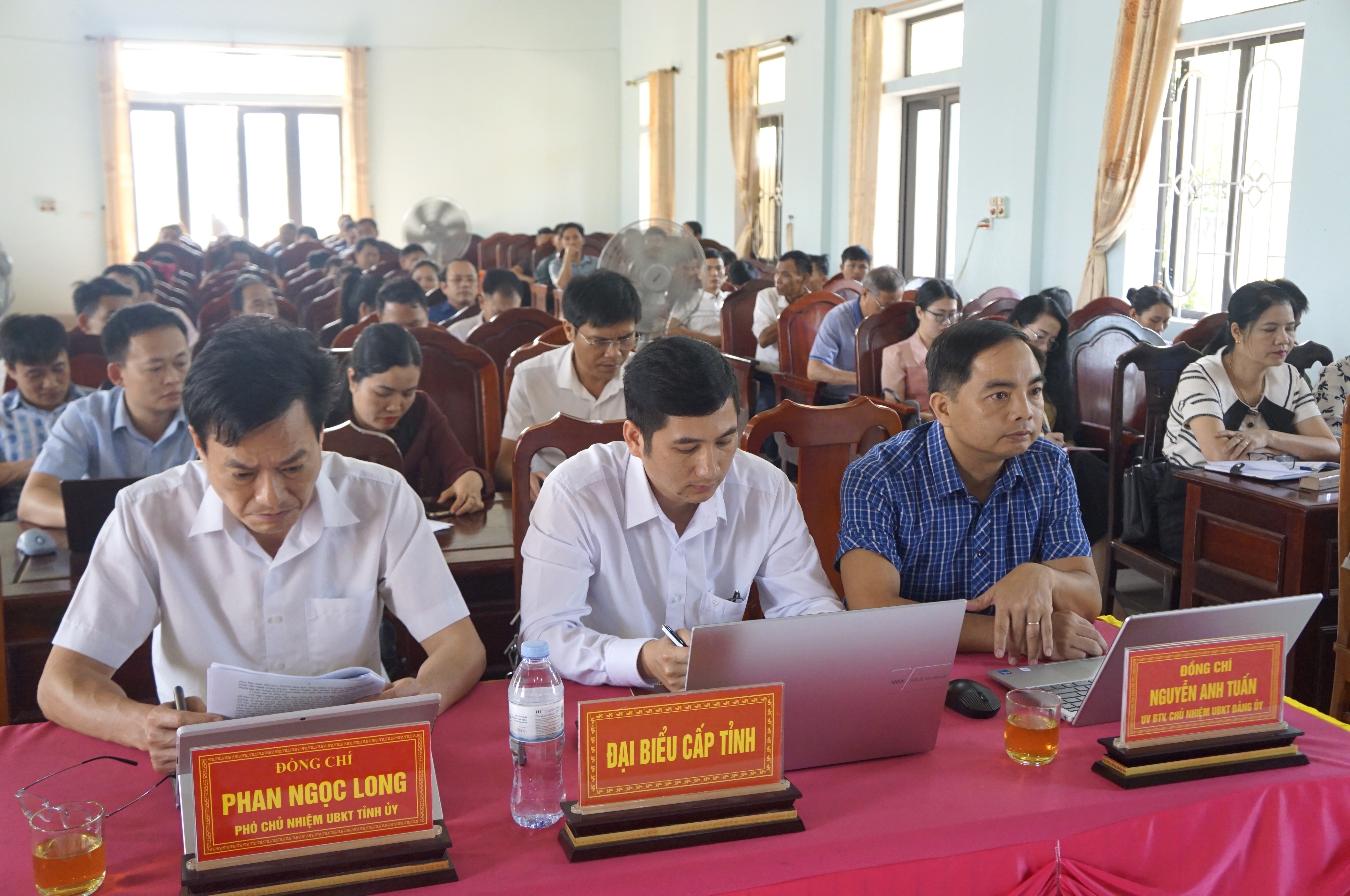 Tham dự Hội nghị có đồng chí Phan Ngọc Long - Phó Chủ nhiệm Ủy ban Kiểm tra Tỉnh ủy; đồng chí Nguyễn Anh Tuấn - Chuyên viên Ủy ban Kiểm tra Tỉnh ủy. Ở cấp xã có đồng chí Phan Kỳ - Bí thư Đảng ủy, Chủ tịch Hội đồng nhân dân xã; đồng chí Lê Trọng Dũng - Phó Bí thư Thường trực Đảng ủy; đồng chí Lê Hữu Đồng - Phó Bí thư Đảng ủy, Chủ tịch Ủy ban nhân dân xã; cùng các đồng chí trong Ban Thường vụ, Ban Chấp hành Đảng bộ xã, cán bộ, công chức các cơ quan, ban, ngành, đoàn thể và bí thư các chi bộ; thôn trưởng, trưởng ban công tác mặt trận các thôn.