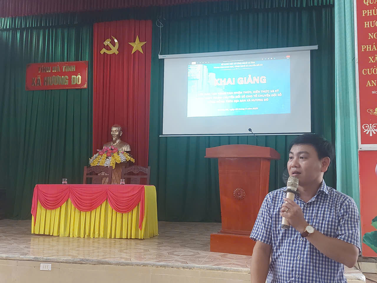 Về tham dự và lên lớp có đồng chí Trần Xuân Sơn - Trưởng phòng Truyền thông và Đổi mới sáng tạo và các đồng chí cán bộ Trung tâm Khoa học, Công nghệ và Chuyển đổi số Hà Tĩnh; về phía chính quyền địa phương, tham dự và chỉ đạo lớp đào tạo có đồng chí Nguyễn Trung Thương, Ủy viên Ban Thường vụ, Phó Chủ tịch UBDN xã; đồng chí Phan Thế Hòa, Phó Trưởng phòng Văn hóa - Xã hội xã; cùng 78 học viên là thành viên của 26 Tổ chuyển đổi số cộng đồng trên địa bàn xã.