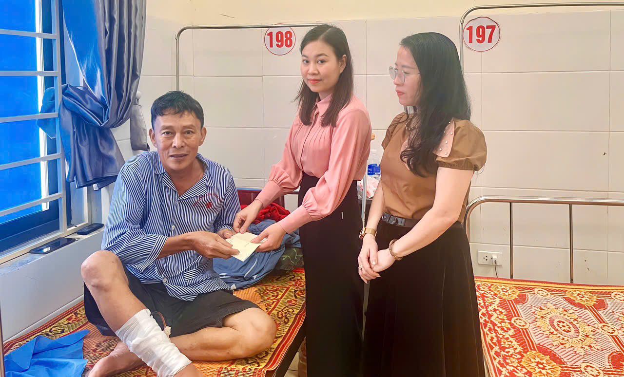 Lãnh đạo chính quyền xã thăm hỏi và tặng quà cho các cá nhân bị thương trong cơn bão số 10