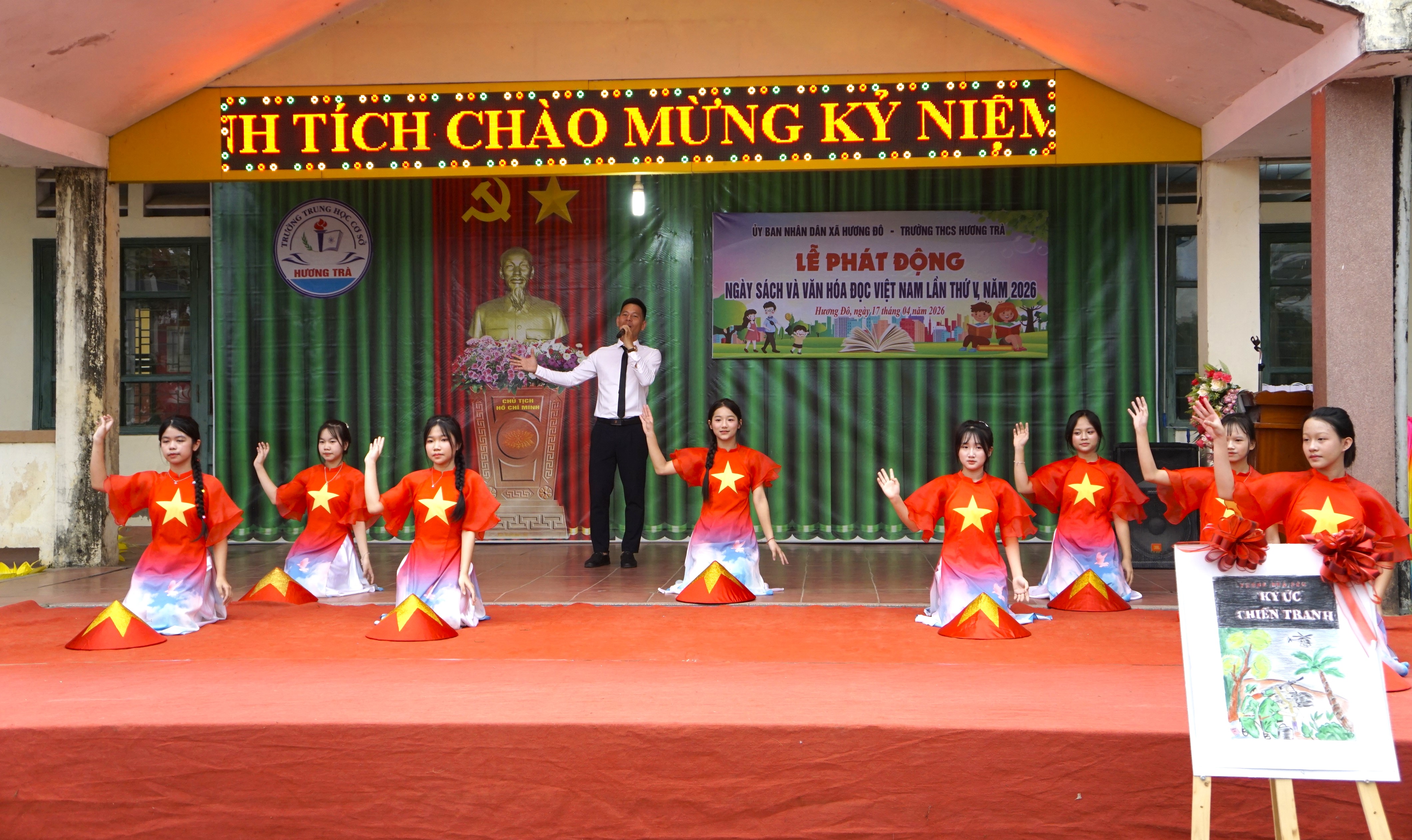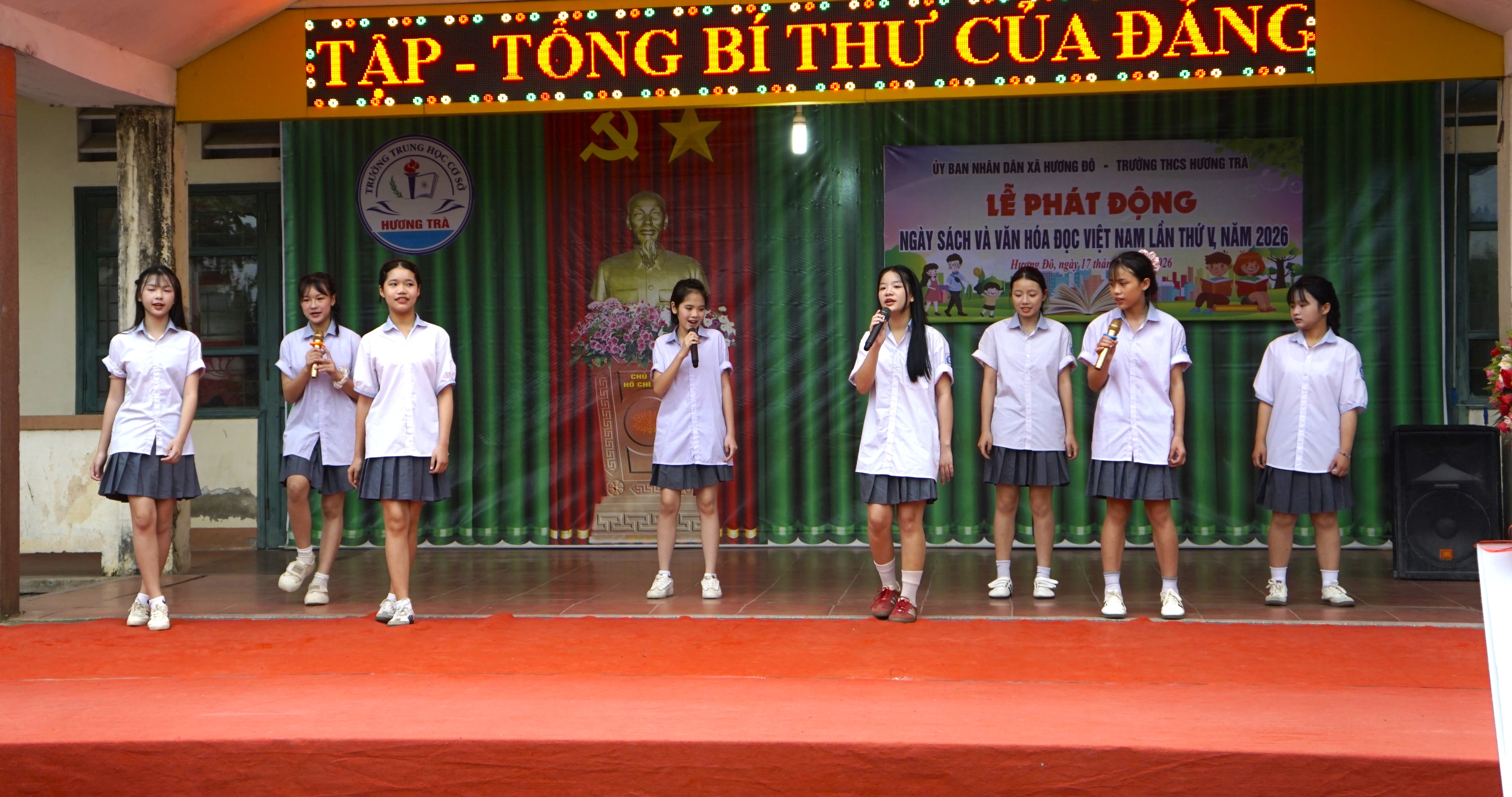 Mở đầu buổi lễ là các tiết mục văn nghệ đặc sắc do các em học sinh Trường THCS Hương Trà biểu diễn, tạo không khí tươi vui, hào hứng.