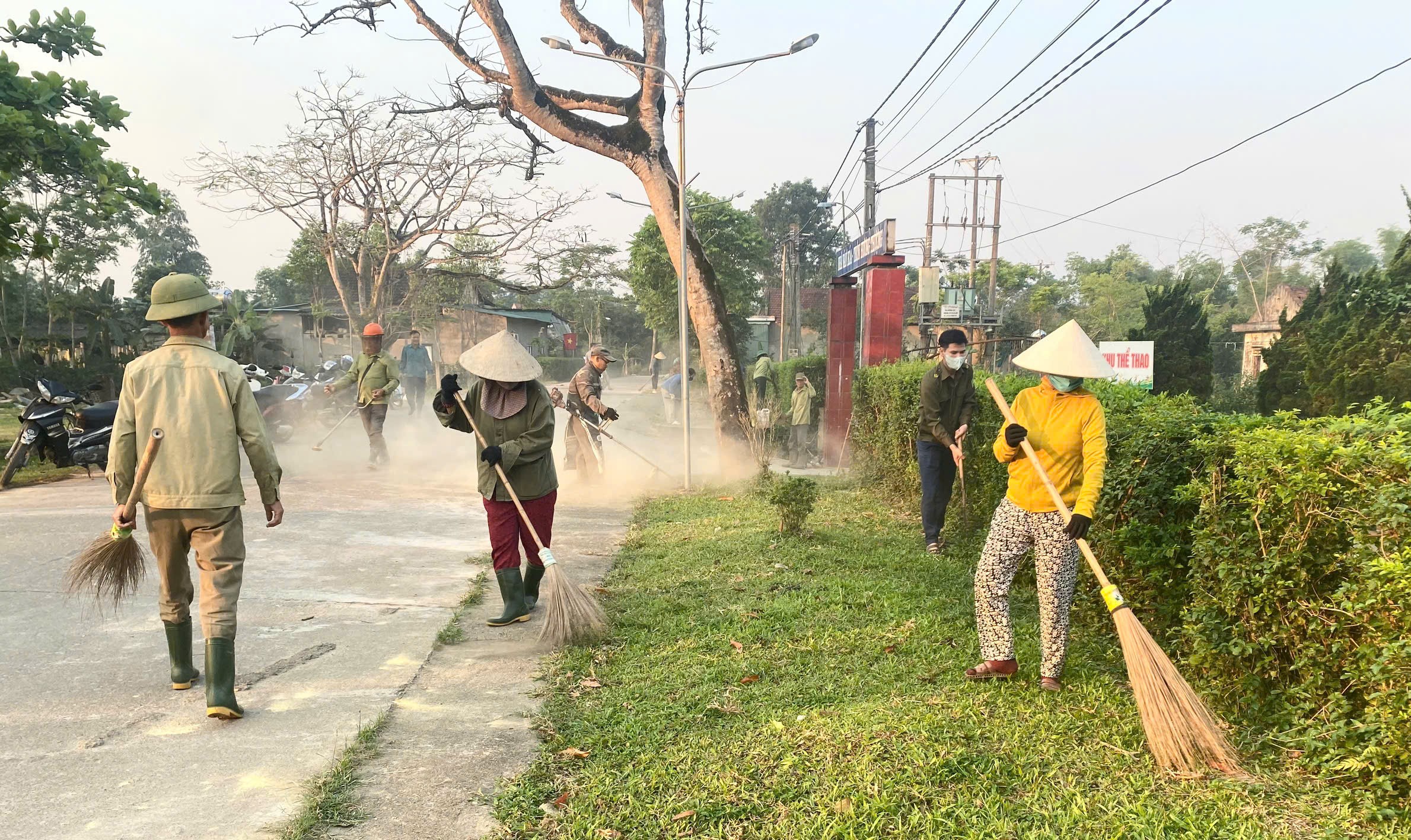 Tại các Thôn, đông đảo cán bộ, hội viên, đoàn viên và Nhân dân các thôn đã tích cực tham gia các phần việc cụ thể như: quét dọn đường làng, ngõ xóm, chỉnh trang tuyển đường tự quản; thu gom, xử lý rác thải; khơi thông cống rãnh, dọn mương nội đồng dẫn nước; cắt tỉa hàng rào xanh, chỉnh trang khuôn viên nhà văn hóa,... Nhiều tuyến đường liên thôn, khu vực công cộng được dọn dẹp sạch sẽ, tạo cảnh quan thông thoáng, xanh – sạch – đẹp.