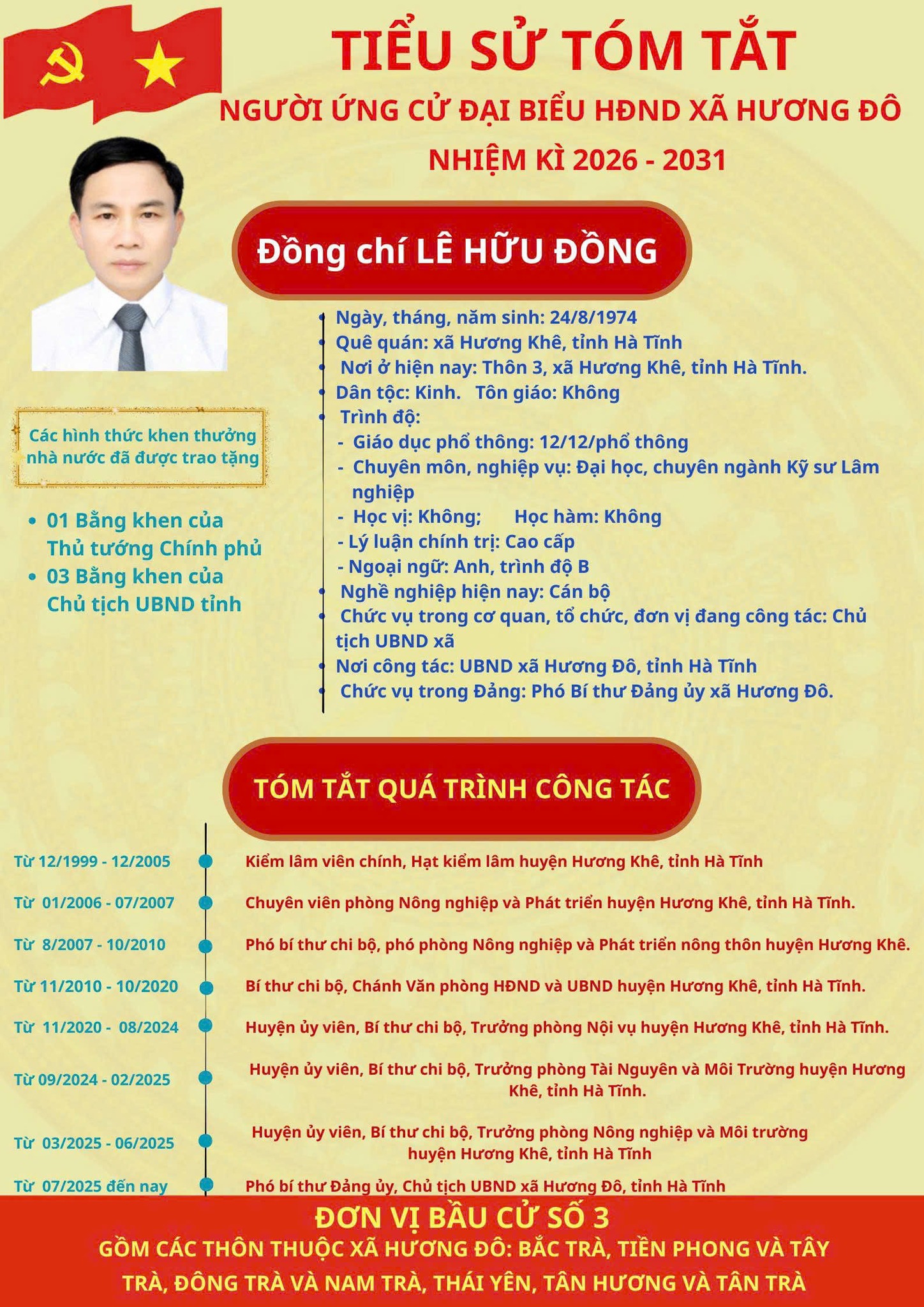 Tiểu sử tóm tắt đồng chí Lê Hữu Đồng ứng viên đại biểu HĐND xã Hương Đô khóa XXII, nhiệm kỳ 2026 - 2031