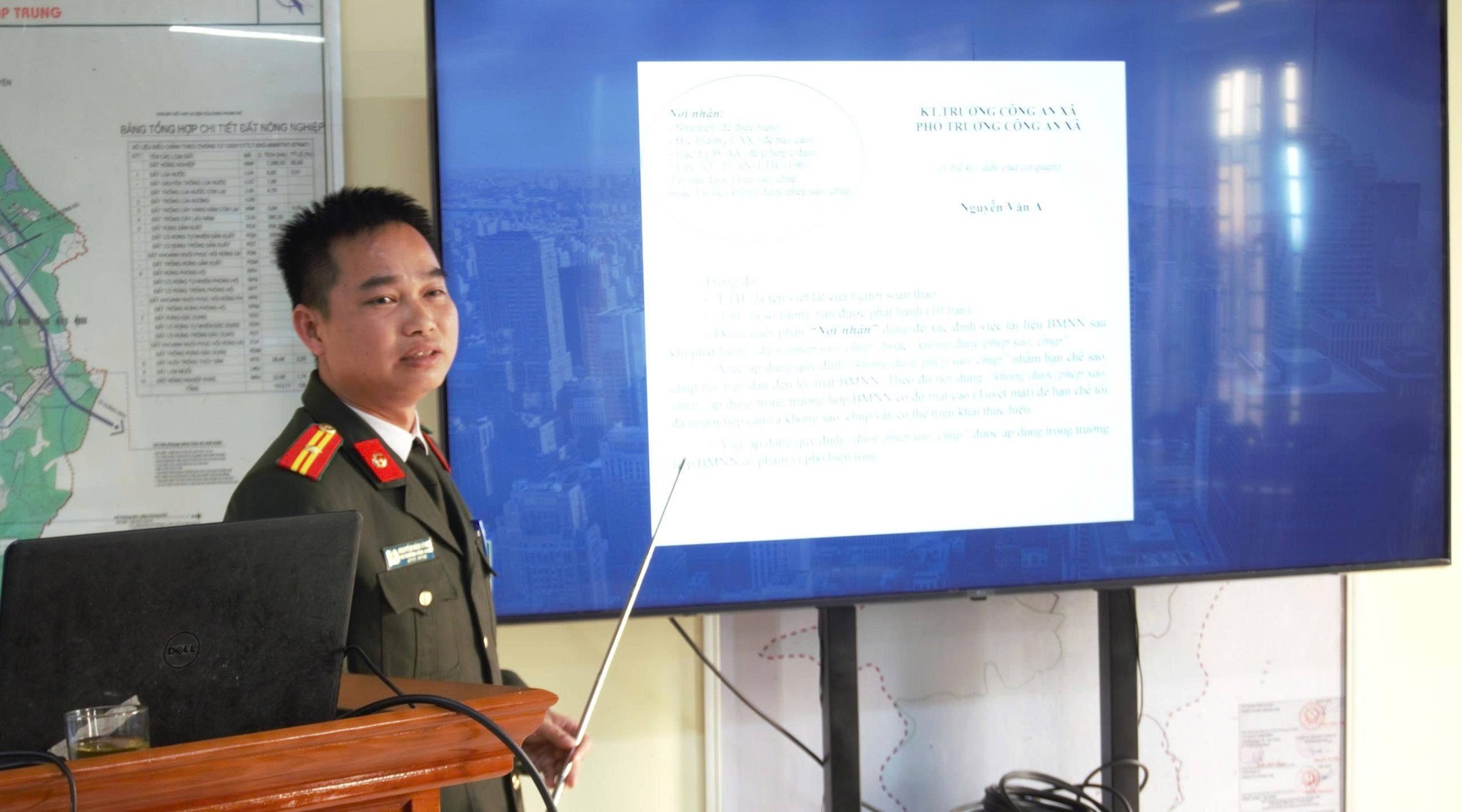 Thiếu tá Nguyễn Văn Hùng - Phó Trưởng Công an xã hướng dẫn tại lớp tập huấn