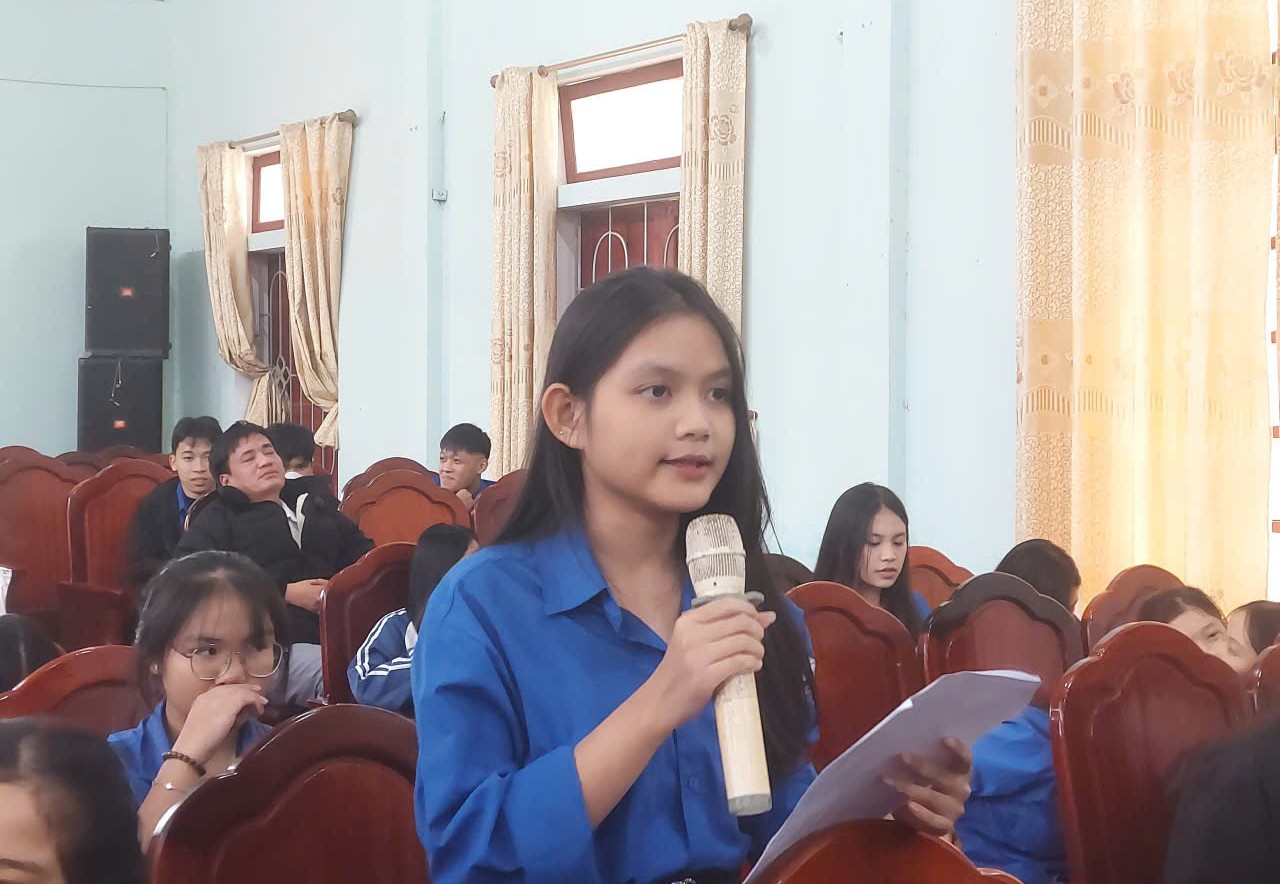 Đồng chí Lê Hữu Đồng, PBT Đảng ủy, Chủ tịch UBND xã giải đáp các thắc mắc của các đoàn viên, thanh niên