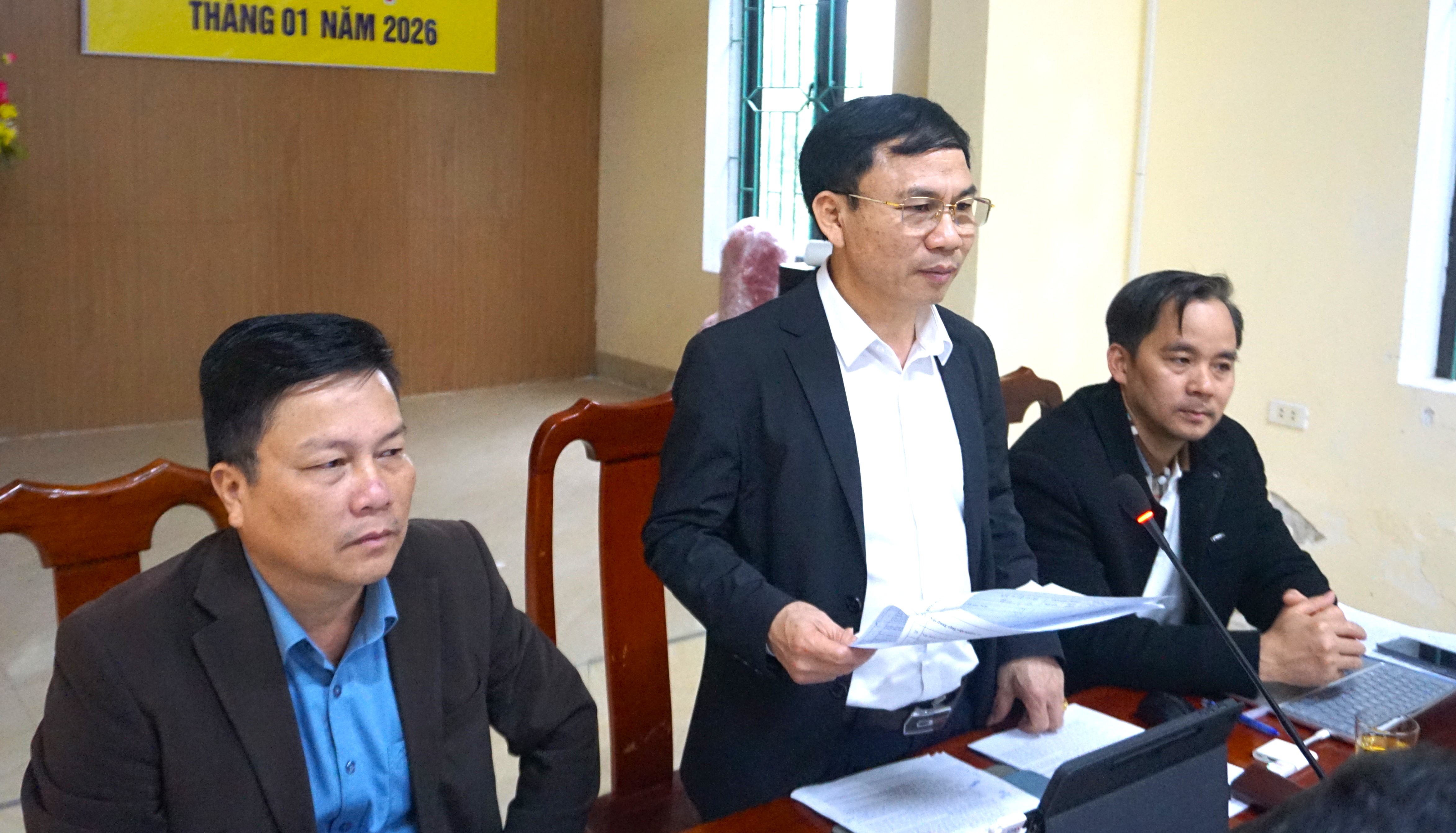 Phát biểu kết luận hội nghị, đồng chí Lê Hữu Đồng – Chủ tịch UBND xã ghi nhận và biểu dương những kết quả đạt được trong tháng 01; đồng thời yêu cầu các ban, ngành, đơn vị tập trung thực hiện tốt các nhiệm vụ trọng tâm tháng 02/2026, trong đó chú trọng đẩy mạnh sản xuất vụ Xuân, chăm lo đời sống Nhân dân, chuẩn bị tốt công tác giao quân, tăng cường công tác quản lý nhà nước trên các lĩnh vực, bảo đảm vững chắc quốc phòng – an ninh, phấn đấu hoàn thành thắng lợi các mục tiêu, nhiệm vụ đã đề ra.