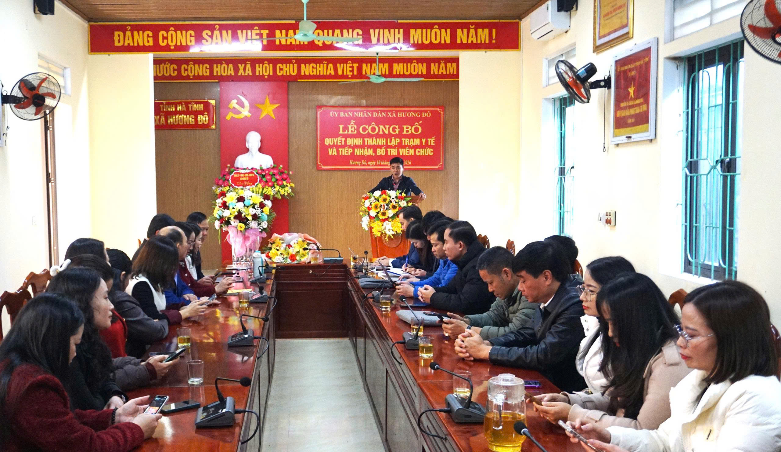 Tại hội nghị, đồng chí Nguyễn Văn Hải - Trưởng phòng Văn hóa đã thông qua Quyết định thành lập Trạm Y tế xã Hương Đô và Quyết định tiếp nhận nhân sự lĩnh vực Y tế dự phòng, dân số từ Trung tâm Y tế thuộc Sở Y tế quản lý đến công tác tại Trạm Y tế cấp xã.